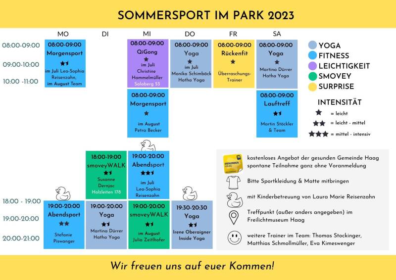 Tag, Monat und Ort der einzelnen Angebote findet ihr übersichtlich in der folgenden Tabelle: